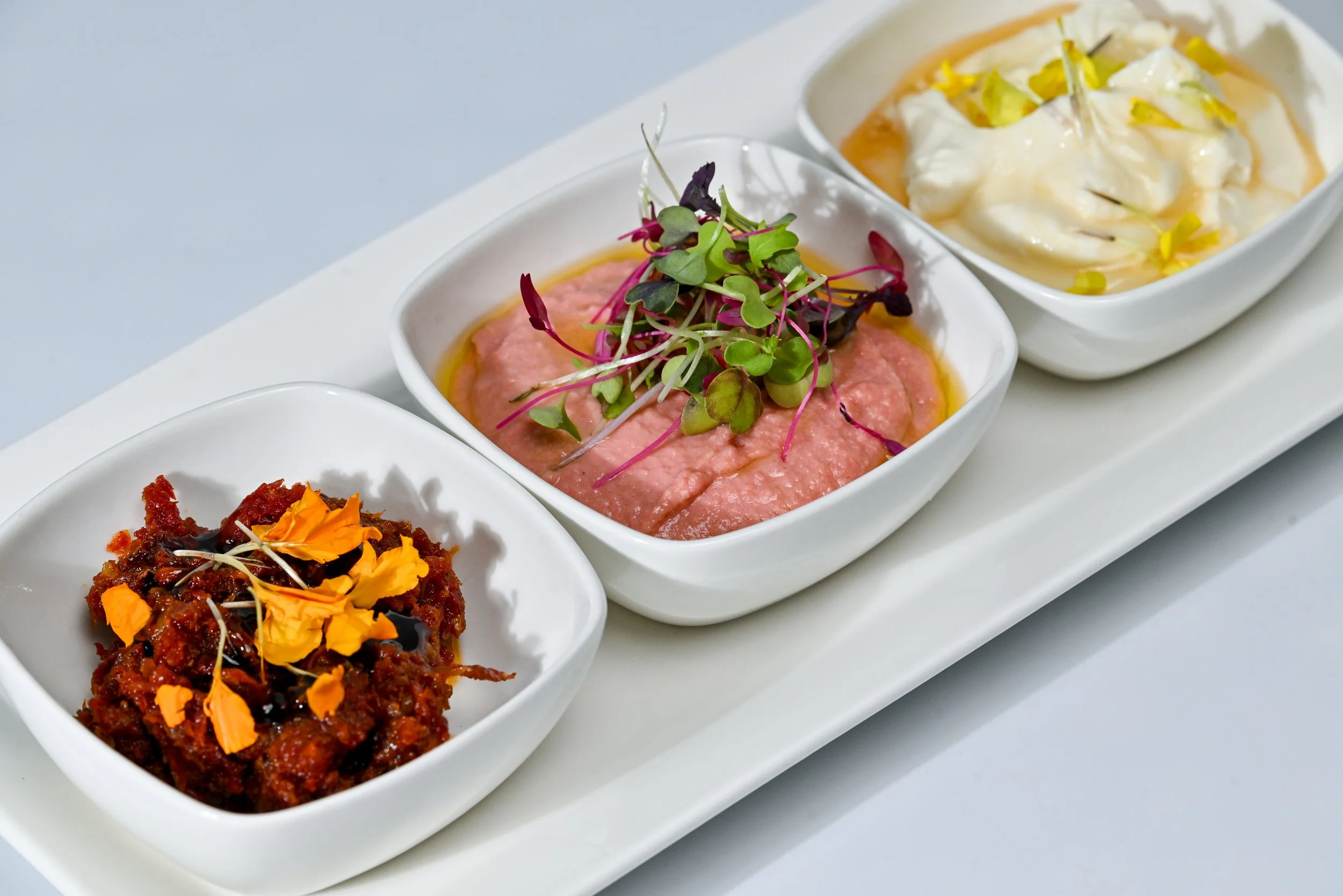 seasonal hummus, sundried pesto or honey ricotta